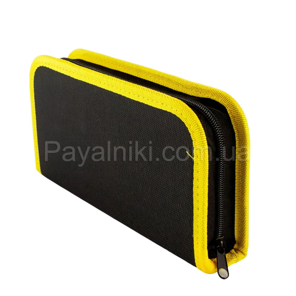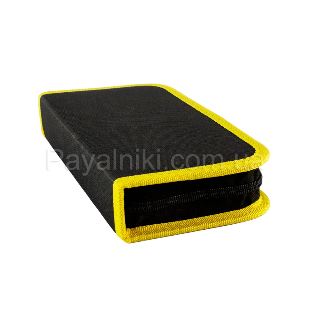 Двосторонній чохол‑органайзер з гумовими фіксаторами та застібкою‑блискавкою. Розрахований на паяльник, відсмоктувач припою, пінцети, дроти та змінні жала. Щільні стінки та продумане компонування запобігають пошкодженням під час транспортування. Ідеальний супутник для наборів паяльника.