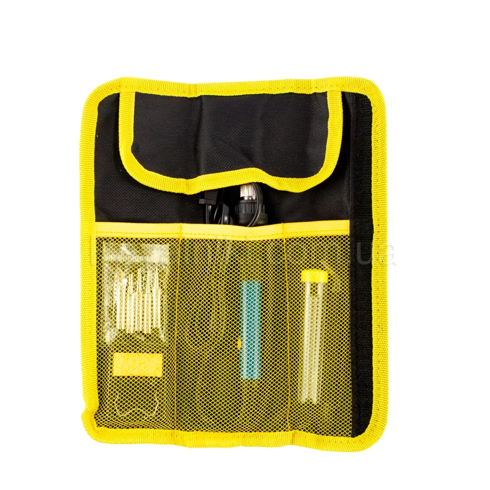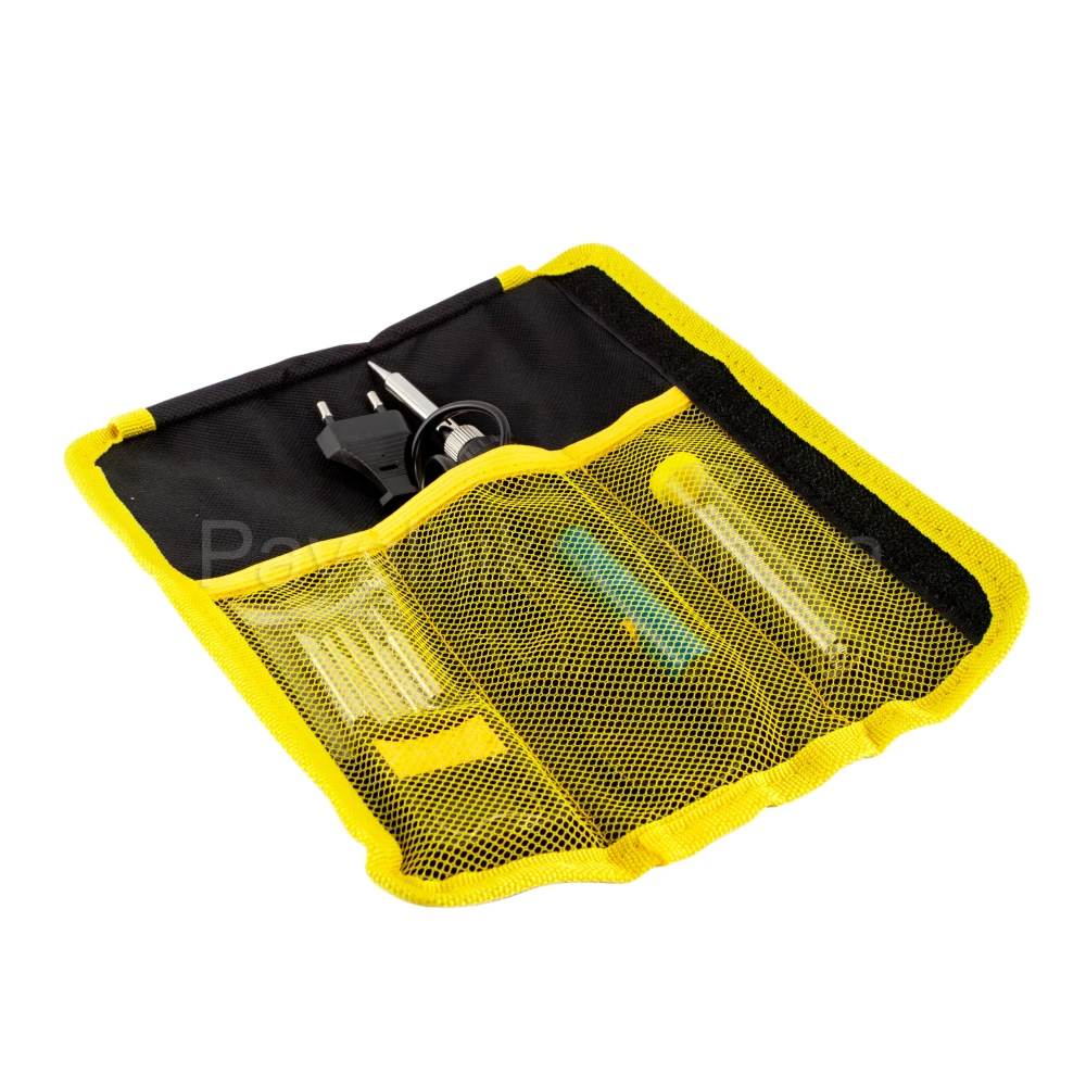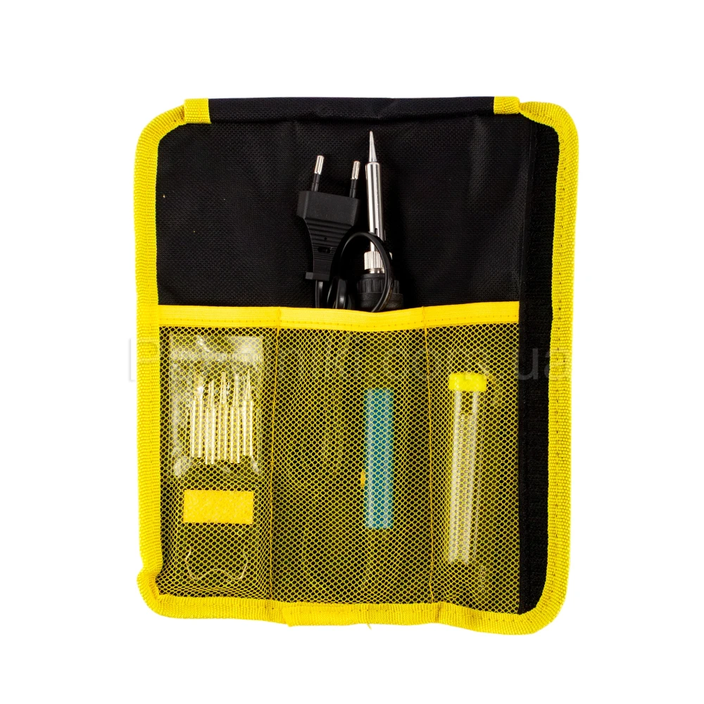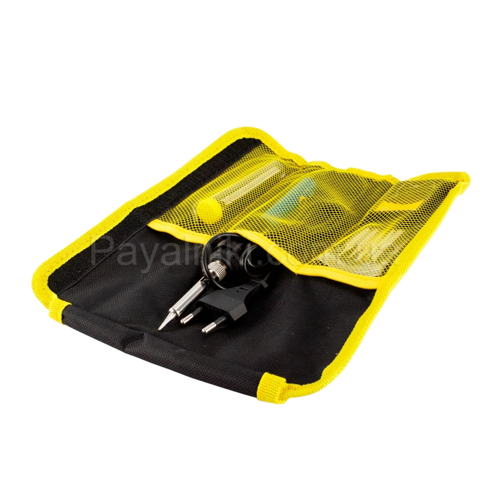 Компактний набір для паяння із регульованим паяльником 60 Вт. Усередині є змінні жала, пінцет, підставка та припій — усе необхідне для базових ремонтів, макетування та дрібних електронних проєктів. Зручний чохол допомагає швидко діставати інструменти і підтримувати порядок.