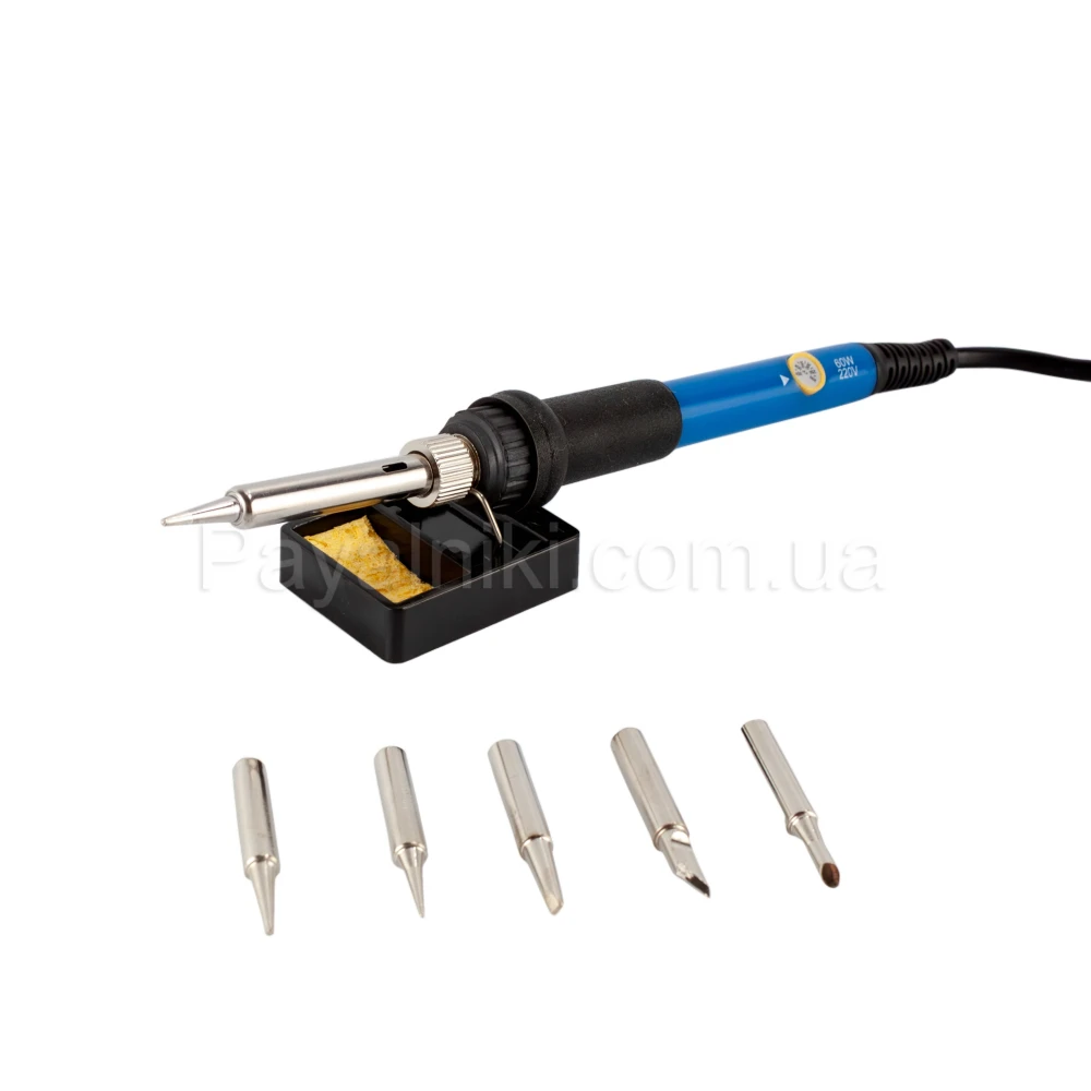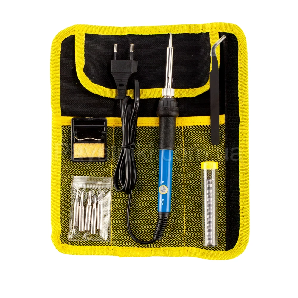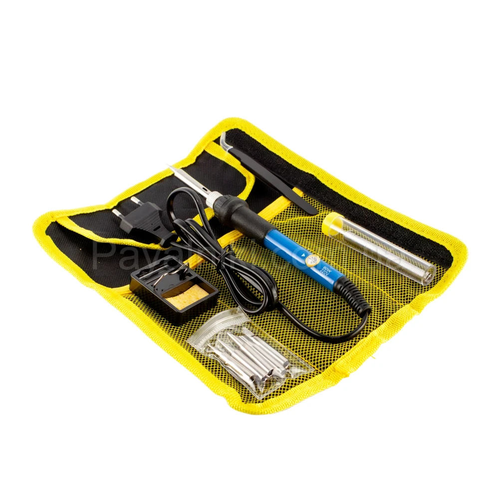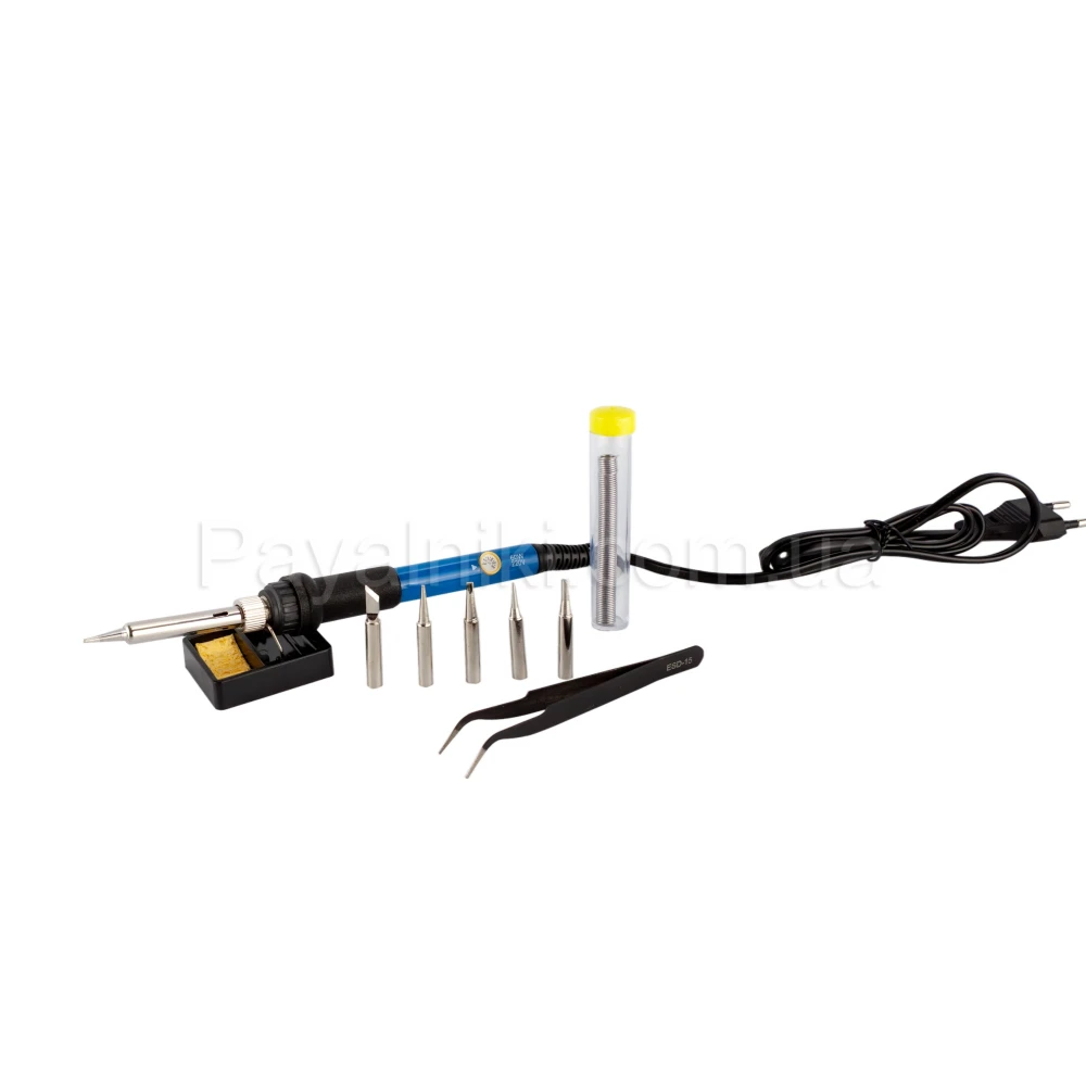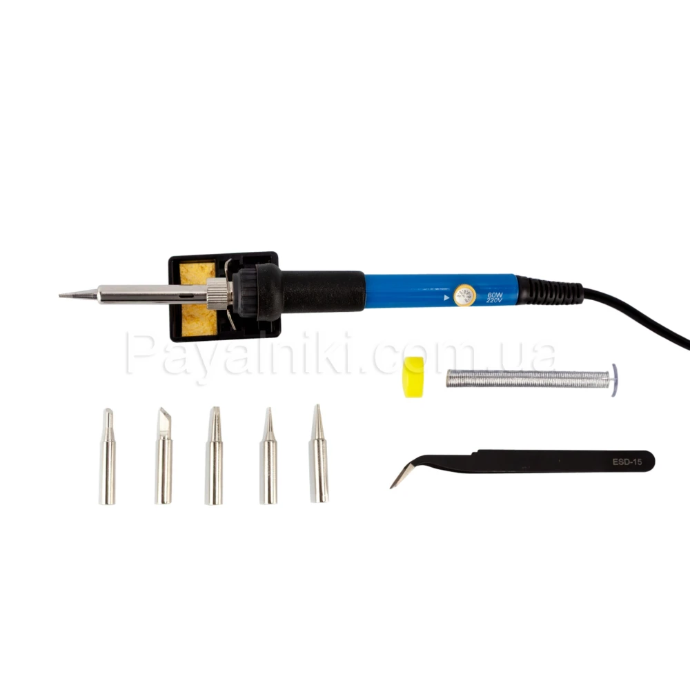 Компактний набір для паяння: паяльник 60 Вт, змінні жала, пінцет, підставка, припій
