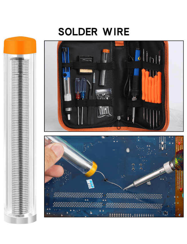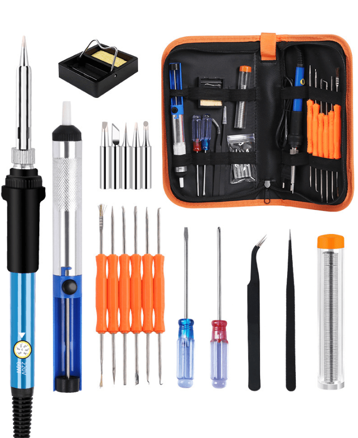 Паяльний набір у пеналі — паяльник 60 W з регулюванням температури жала, інструменти.