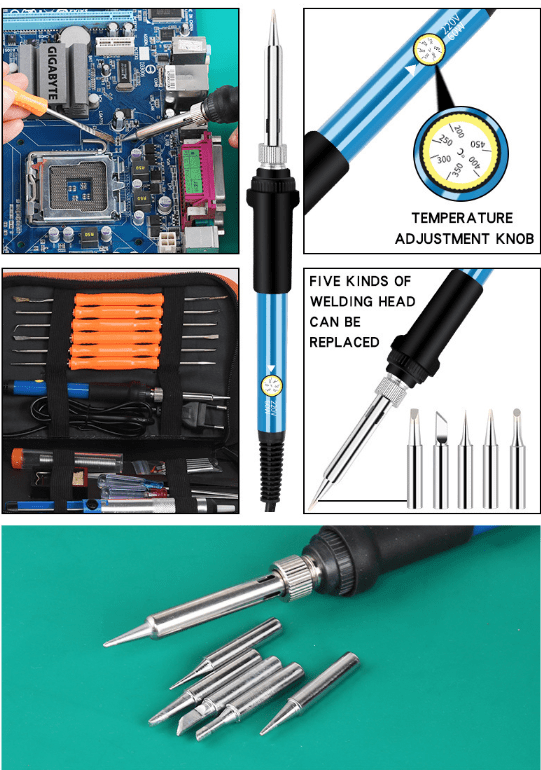Паяльний набір у пеналі — паяльник 60 W з рег. t, жала, інструменти