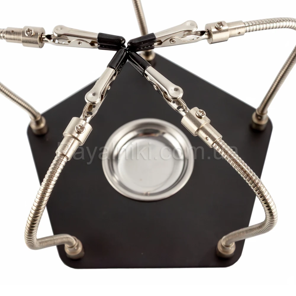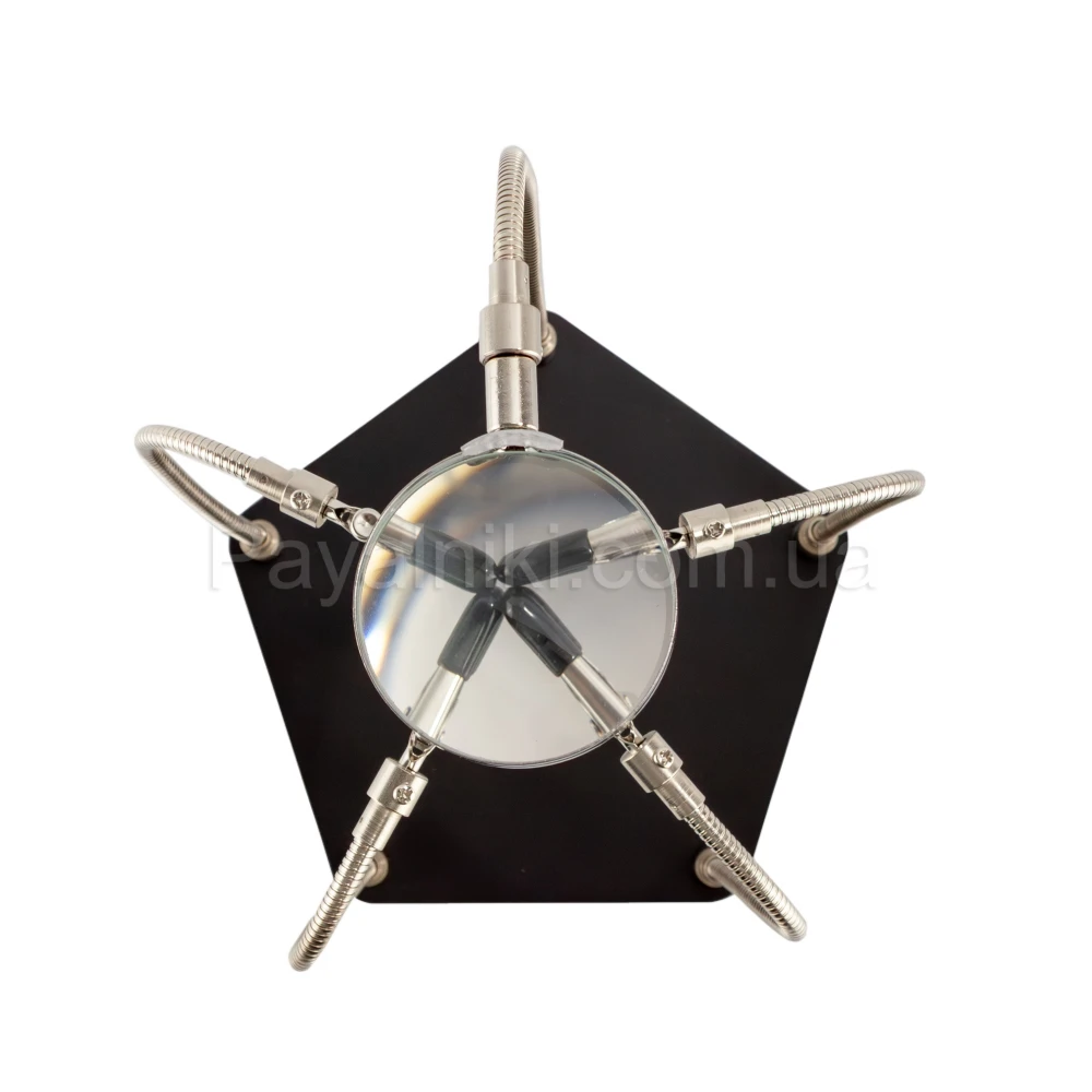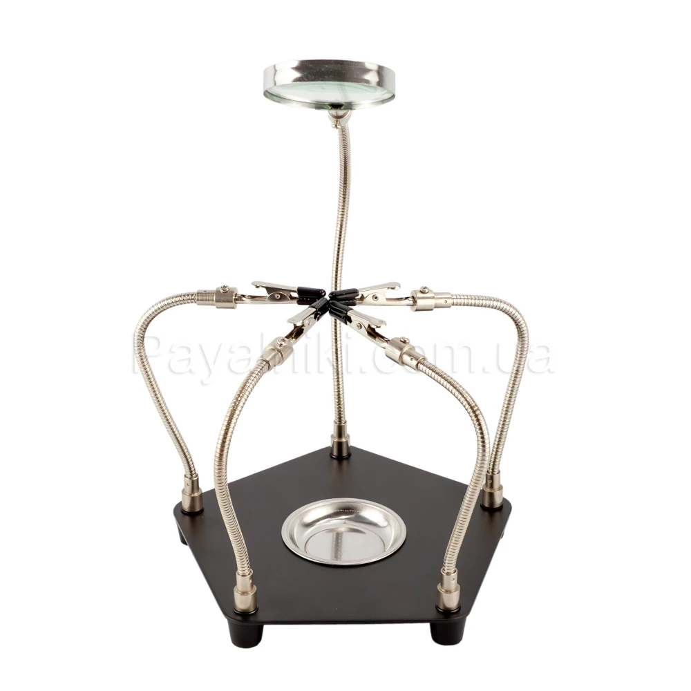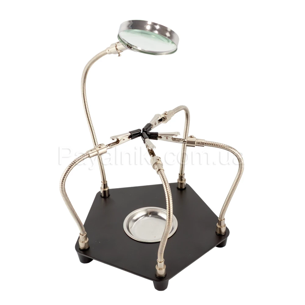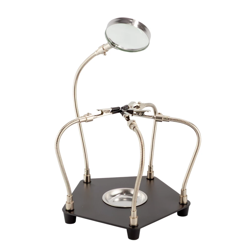 Гибкая подставка для пайки: 6 «крокодилов» на шлангах, лупа/лампа, магнитная чаша