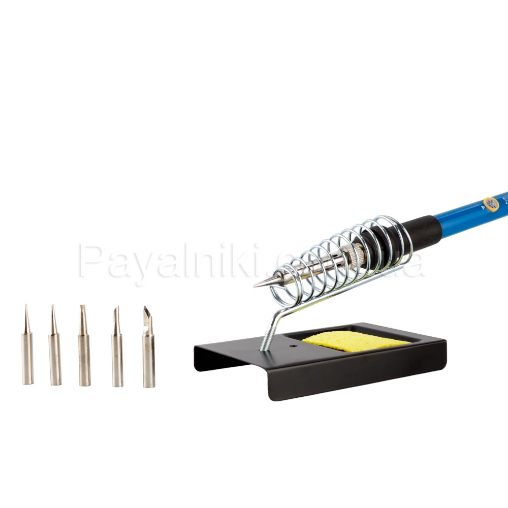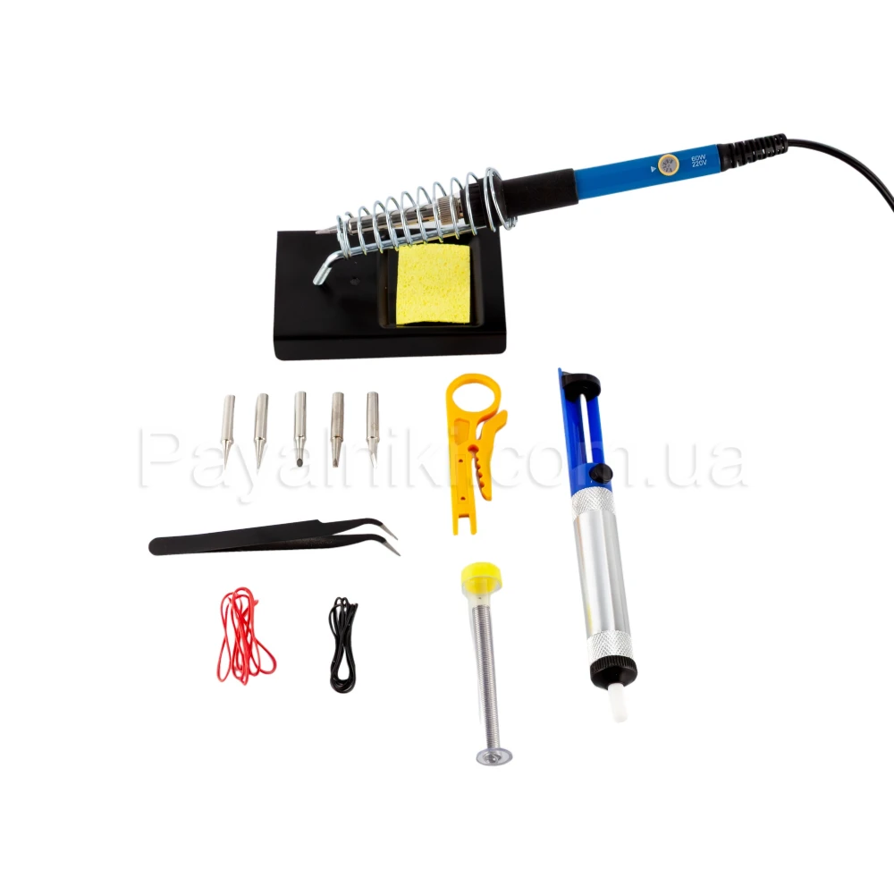 Набор для пайки в чехле: паяльник 60 Вт, отсос припоя, держатель, жала, припой
