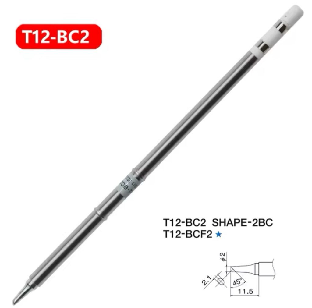 Жало для паяльника T12-BC2. Сопротивление 8,5±0,80; вход ≤25 В DC; мощность ≤80 Вт; температура 0–500 °C.